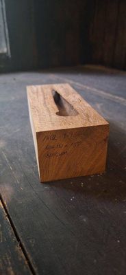 Small block with worm holes, curios put aside over the years for their unquie or one off, patten, figure, colour or grain. Rare, unusual and intriging objects of wood. Puriri moth hole.
