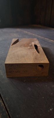 Small block with worm holes, curios put aside over the years for their unquie or one off, patten, figure, colour or grain. Rare, unusual and intriging objects of wood. Puriri moth holes.