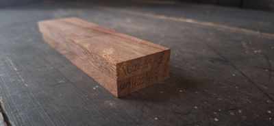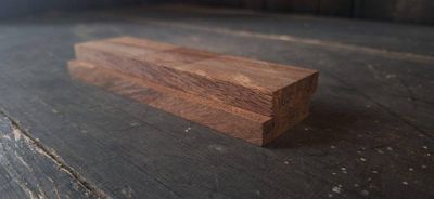Mirror matched set of knife scales, suitable for forming a knife handle either side of the tang. This wood chosen for its colour and figure. Serviceable as bare wood but better kept oiled to show the grain and figure. Other sets cut from the same piece of wood are listed, those that are close consecutive numbers (either side) and have the same grade may be similar in colour and pattern.