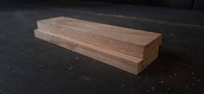 Mirror matched set of knife scales, suitable for forming a knife handle either side of the tang. This wood chosen for its colour and figure. Serviceable as bare wood but better kept oiled to show the grain and figure. Other sets cut from the same piece of wood are listed, those that are close consecutive numbers (either side) and have the same grade may be similar in colour and pattern.