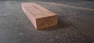 Mirror matched set of knife scales, suitable for forming a knife handle either side of the tang. This wood chosen for its colour and figure. Serviceable as bare wood but better kept oiled to show the grain and figure. Other sets cut from the same piece of wood are listed, those that are close consecutive numbers (either side) and have the same grade may be similar in colour and pattern.