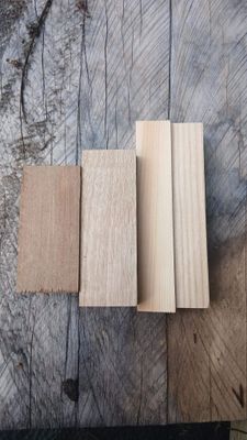 Tanekaha, Phyllocladus trichomanoid, Indigenous, Origin: Aotearoa-NZ, Softwood, Moderate Durability, Hardness is Moderate to Hard, Strong, Average Density of 610 kg/m3 , Colour: Whitish to Pale Red Brown.