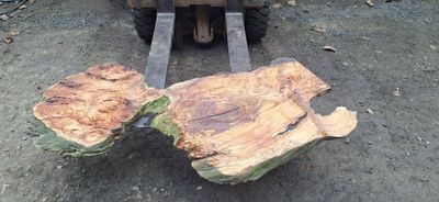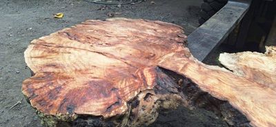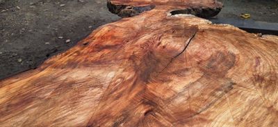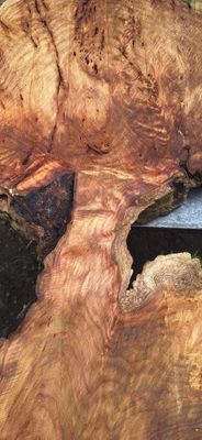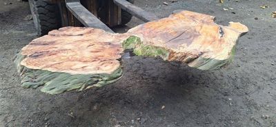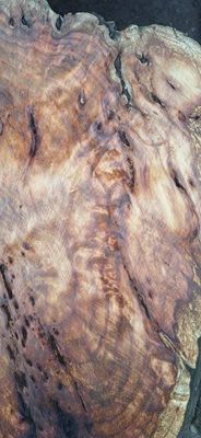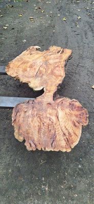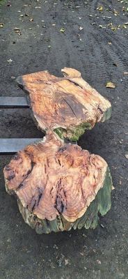 Weirdly shaped Wonderful Wood, Burl Macrocarpa slab, resawn flat, entirely upper face and underside reference points, the slab sitting flat of an even thickness. Air dry at resawing early April 2025, now residing in dry store, presently 11-12%. Suitable for Epoxy or Glass top table or small writing, desk.