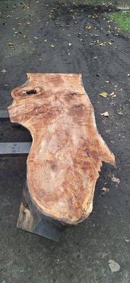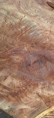 Sycamore slab, resawn flat, of an even thickness. Pinhole borer throughout, small black pepper holes, one of the wet wood borer species, long gone from raising their offspring, now the wood is milled from the log, seasoned and dry, no dry wood borer present. Air dry at resawing early April 2025, now residing in dry store, presently 11-12%. Suitable for heavy Epoxy table.