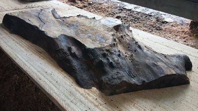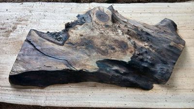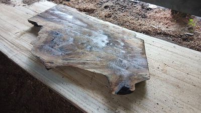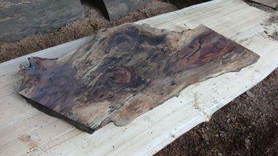 A Black Walnut A Grade Slab with Pattern, Wide_400, Short, 1888-61-2 RF1S ELE8. High spalt present. Resawn flat both faces, kiln conditioned, stored in dry store. treated with Ripcord to protect from borer. ready to use, suitable for small coffee table, epoxy table project or other craft or art project.