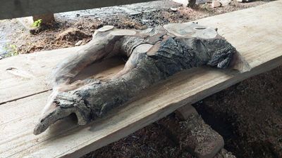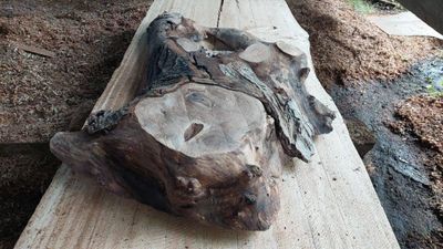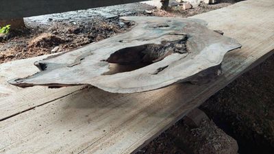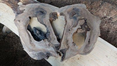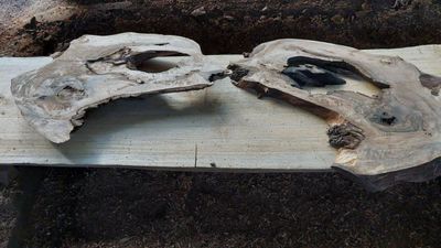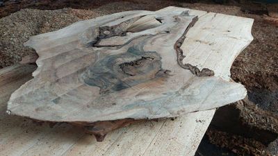 Persian Walnut, slab with voids, a mirror match to 1790-1-2. Kiln conditioned, resawn flat both faces to even thickness, treated to protect from borer. Suitable for epoxy project. Possibly thick enough to resaw into two thinner pieces. To see the larger matching piece available click here >>>1790-1-2, some photos included.
