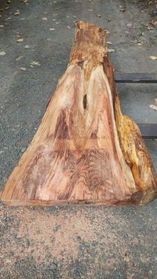 This slab is offered for sale to those who wish to build their own Bar Leaner or BBQ Side Bench or similar. The Price is reduced as it has limited drying, Air Dry (AD) or no drying applied Wet Sawn, (WS). These slabs are not suitable for inside the home, office or other such buildings. Air Dry slabs have been resawn flat, prior to listing. They are stored in open sheds under cover but subject to outside humidity and temperatures. Note: slabs have live edges, the live edges are sapwood and all sapwood is non-durable.