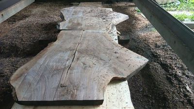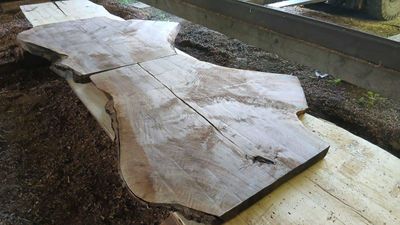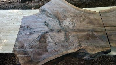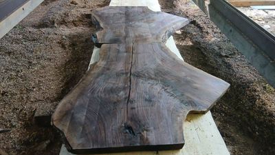 Black Walnut slabs, dark rich colour, mirror matched or end matched crotch slabs, resawn from air dry, placed in a dry store for 12 months to kiln condition. They have now had a final resaw, borer protection applied and wrapped. The resawing producing flat slabs of even thickness, sufficient to be run through a thicknesser, belt sander or placed on CNC or router table to finish. The two slabs can be placed side by side or end to end. They are offered for sale as a pair.
