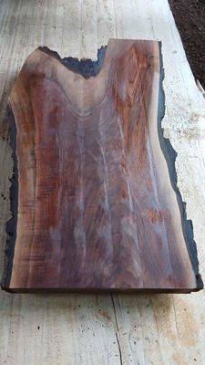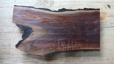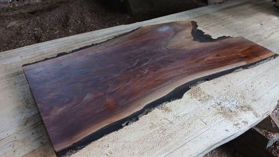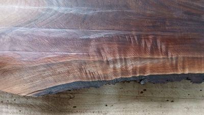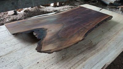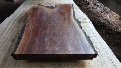 Black Walnut mini slab has been resawn flat and kiln condition ready for interior use as small furniture or other woodwork project. This slab has good grain, colour with a touch of crotch patten and attractive compression figure along the live edge.