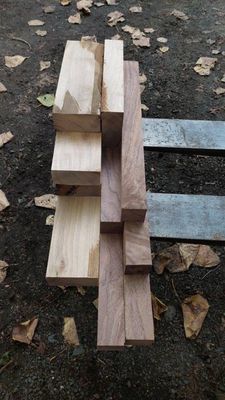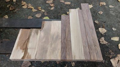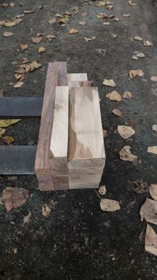 Craft Pack of ex 50mm, Resawn straight and flat ready to work, selected for contrasting light and dark. In this case the same species, Black Walnut, the dark wood the heartwood and the light wood the sapwood. The sapwood cut from a tree with a high sapwood band, cased by canker. Its by no means a perfect white, but its a choice for the likes of a Chess set or similar. Sapwood free of borer, protected during drying, both lots Kiln Conditioned.