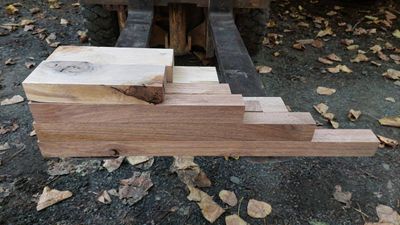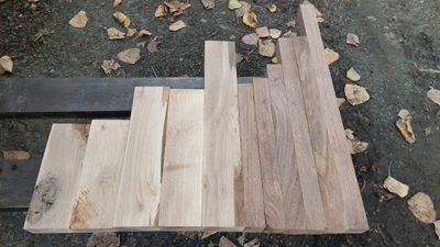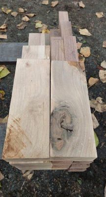 Craft Pack of ex 50mm, Resawn straight and flat ready to work, selected for contrasting light and dark. In this case the same species, Black Walnut, the dark wood the heartwood and the light wood the sapwood. The sapwood cut from a tree with a high sapwood band, cased by canker. Its by no means a perfect white, but its a choice for the likes of a Chess set or similar. Sapwood free of borer, protected during drying, both lots Kiln Conditioned.