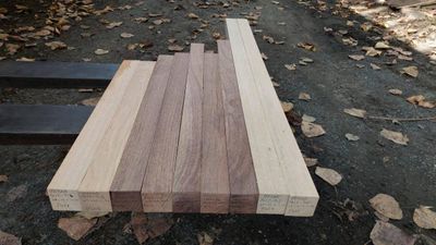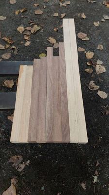 Craft Pack of ex 50mm, Resawn straight and flat, kiln conditioned ready to work, selected for contrasting light and dark colours. Two species, one Indigenous to New Zealand, Aotearoa, Taraire, light in colour, the other an exotic grown in NZ, Black Walnut, the dark wood. These species selected for their fine wood working qualities suitable for a Chess set or similar.