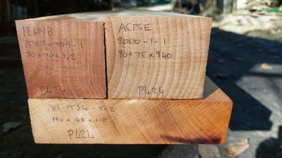 London plane, Platanus hybrid, Exotic, Origin: Europe, grown in Aotearoa - NZ, Hardwood, Non-Durable, Hardness is Hard to Very Hard, Moderate to High Strength, Average Density of 731 kg/m3 , Colour: Darker Reddish Brown, Strong Medullary Ray Figure.